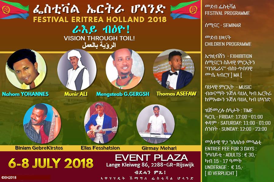 The Eritrean Festival in Holand will take place from July 6 to July 8, 2018 at Rijswijk Holland.