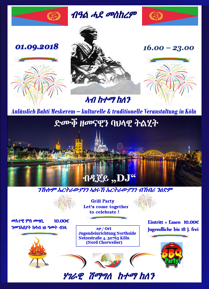 ብዓል ሓደ መስከረም ኣብ ከተማ ከለን 01.09.2018 Hade Meskerem Event in Cologne
