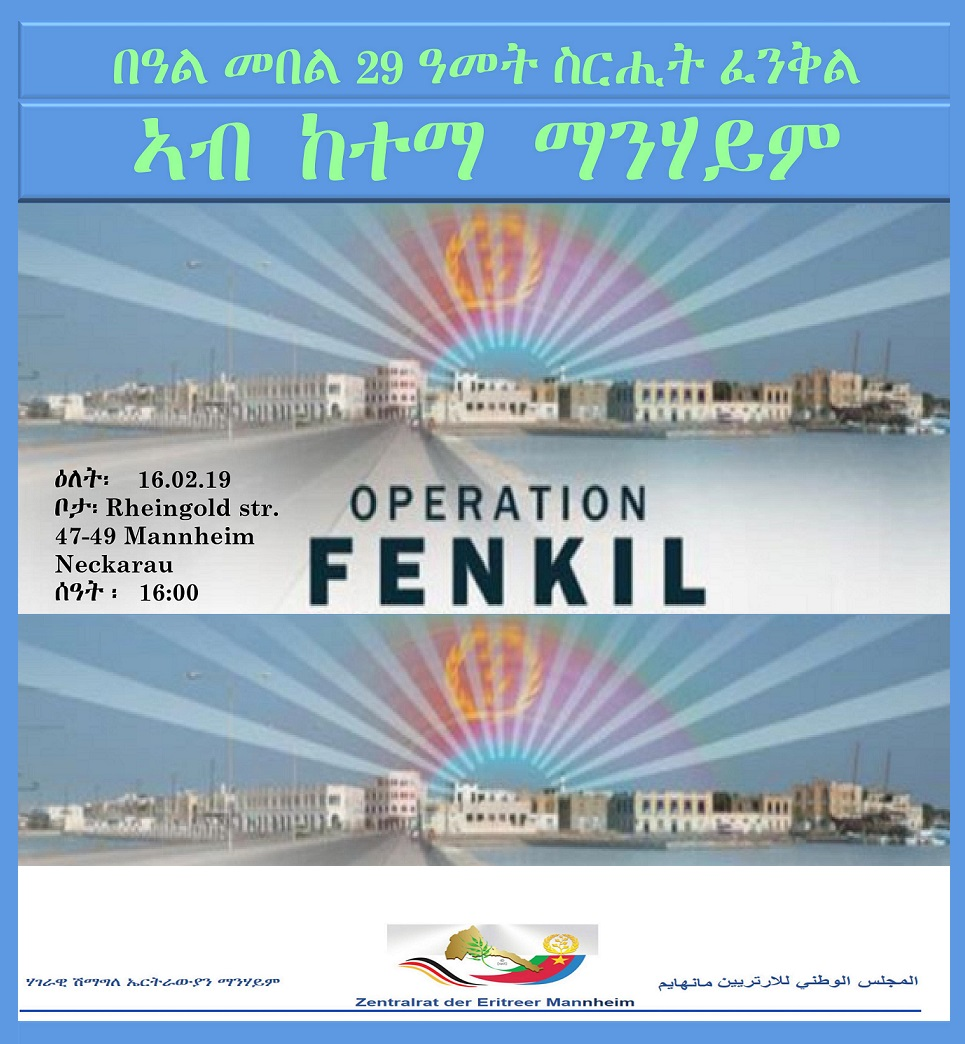 መበል 29 ዓመት በዓል ስርሒት ፈንቅል ኣብ ከተማ ማንሃይም ንዕለት 16-2-2019
