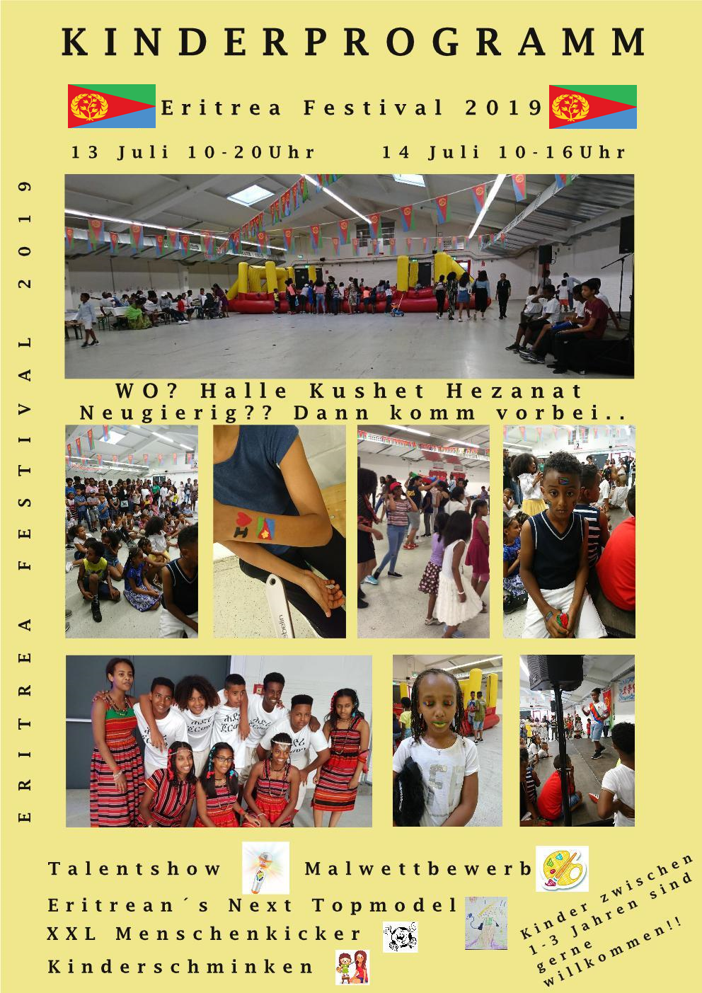 መደብ ሕጻናት ኣብ ፌስትቫል ኤርትራ - ጀርመን ካብ 12 ክሳብ 14 ሓምለ 2019 ኣብ ከተማ ጊስን *** KINDER PROGRAM am FESTIVAL ERITREA Deutschland 12-14 Juli 2019 in Giessen