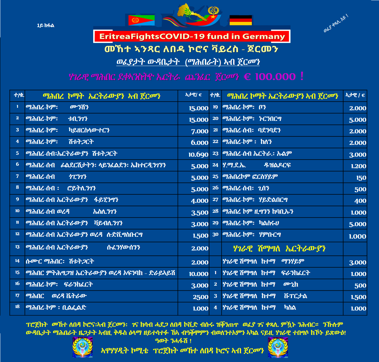 Eritrea Flight COVID - 19 Donations of Eritrean Organizations Part 1